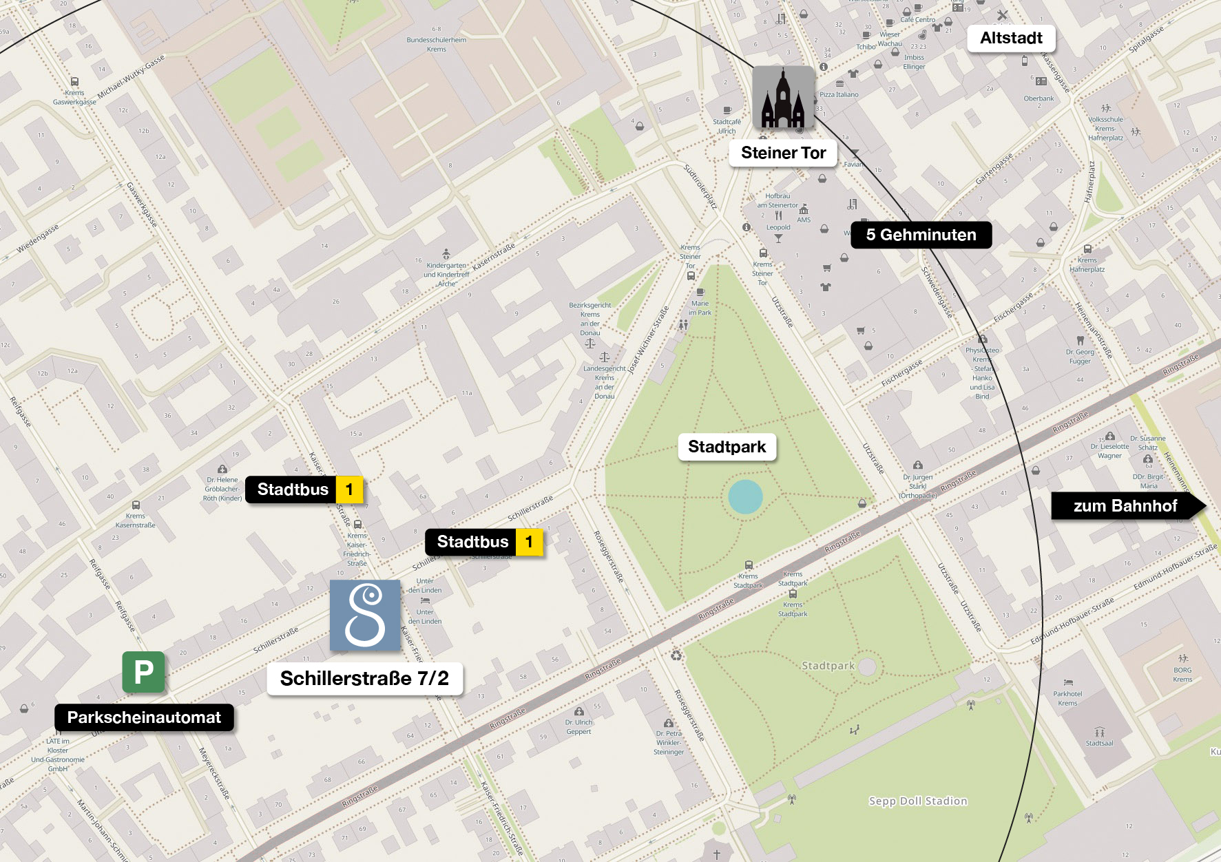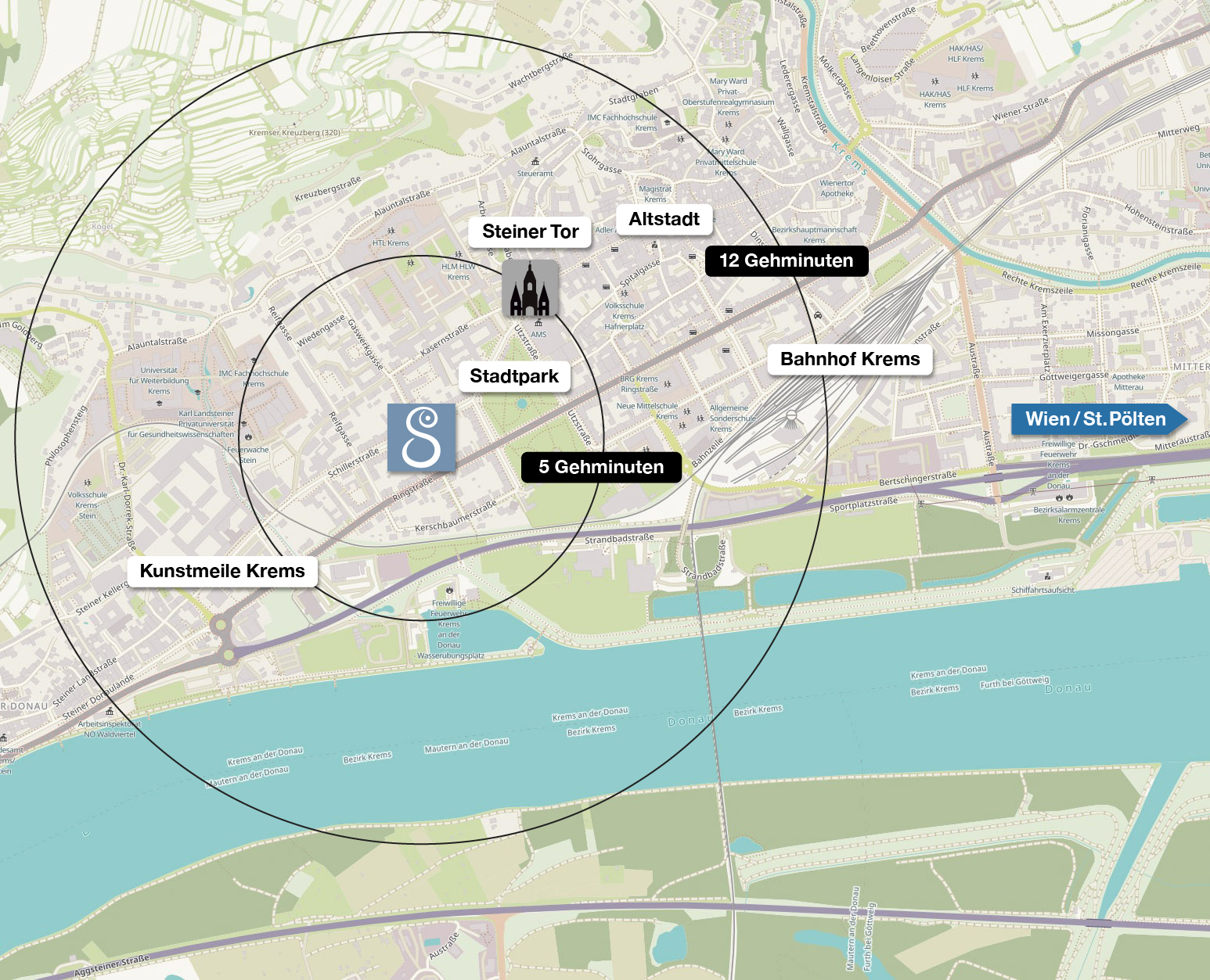 • Bahnhof Krems an der Donau (12 Gehminuten)
